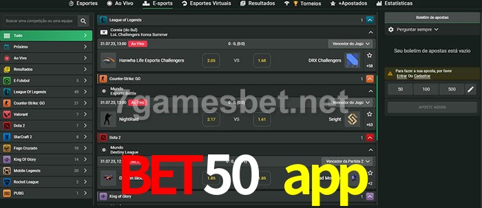 A aposta bet50 app oferece aos jogadores a experiência mais conveniente de apostas em eSports!